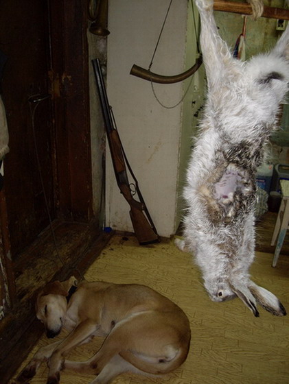 | Добрый вечер! С утра что-то холодновато показалось. Выехал в 11 часов. Взял с собой двух выжлецев, Вожака с Разгоном. В лесу сплошные тропы, как будто табун зайцев прошел. Собаки долго ковырялись, но все-же подняли. Пол часа гона - зайца положил, скормил пазанки, пошел к машине. Иду заяц в одной руке,ружье в другой. Выжлецы толкнули на зрячую и прямо на меня. Заяц выкатил прямо в ноги! Стрелял с двух метров - смазал. Собаки погоняли, но видимо был не наш.
