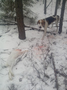 | ЭГ Гайда которой завтра исполняется 8 месяцев самостоятельно подняла двух заек. Первого погоняли 10 мин и скол, со скола не ушла, снял через 30 мин. Переехали, набросил, пока пил чай закружила в 50 метрах от машины через 5 мин подъём. на 45 минуте добыт. Гон был плохой сплошной скол.