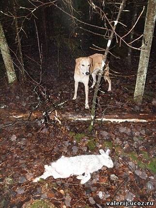 | Ну а сегодня был действительно мой день!!! С утра не сложилось,подняли быстро,мин через 15 я перевидел крупного,почти выкуневшего беляка,стрелял в угон,через ёлки и не в меру.После этого гон ушёл со слуха.Подождал мин 20 и пошёл туда.Прошёл около 1.5 км,смотрю,выжловка лазает,видимо запал.И в скоре яркая поиычка и гон почти по прямой и опять со слуха.Я продвинулся с км,посидел,чайку попил-тишина.Через час собака пришла.Похоже опять запал.Косой грамотный попался,ушлый! Пошли дальше,долго без подъёма.И уже на выходе-подъём!Подробно уж не буду расписывать,а в кратце так- зайка молодой,но чисто белый,видел на дороге 4 раза.Час ходил оч широко,сколов почти нет,собака в минуте и меньше.Зайчишка на ноги понадеялся и зря!После часа такого гона,зай вернулся к подъёму и стал западать,но видно сильно притомился,западал с ходу,поэтому и сколы макс минута.Гон почти на месте,толчками,оч яркий.Буквально на ста метрах и я рядом.Стою и думаю,похоже зайке кердык будет,или словит или сгонит- не выдержать ему.И тут совсем рядом,очередная помычка,не оч яркая,но с быстрым продвижением и тут же,как обрвало.Тишина с минуту и я пошёл к сколу-метров 70 от дороги.Выжловка стоит над зайцем.Заяц задеревенел как каменный,из носа кровь- сгонен!Рацеловал я собаку и дал последний бутерброд.На моей практике(18 лет),в одиночку сгоненого видел впервые.Эта же выжловка славливала не раз,смычком сганивали,было,не раз,не два,но в одиночку впервые.Сегодня я счастлив!!!Работа была отличная,на 1ст без вопросов,зайца насмотрелся,наслушался,набегался и в итоге сгоненый по всем правилам заяц.Давненько так хозяина не радовала.Извените за избитую фразу- Ради этого стоит жить! Удачи всем!